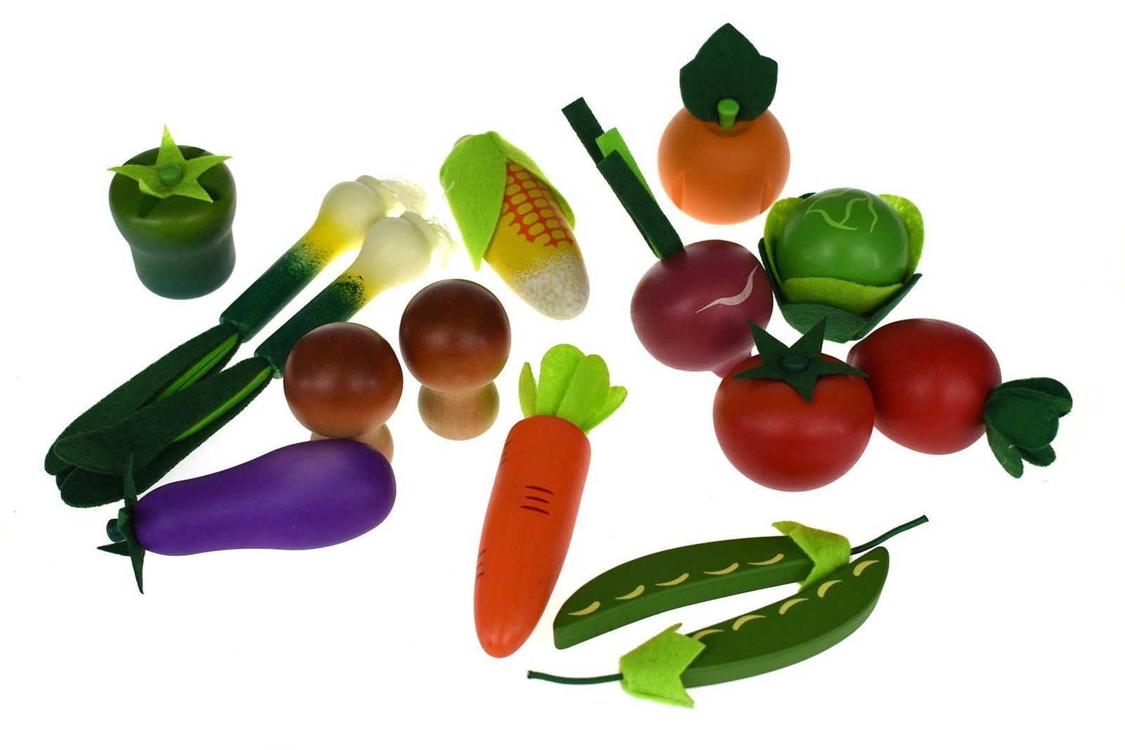 Beautifully made, solid beech wood vegetables, paint with water base paint. Each wooden crate contains a set of 15 vegetables.
